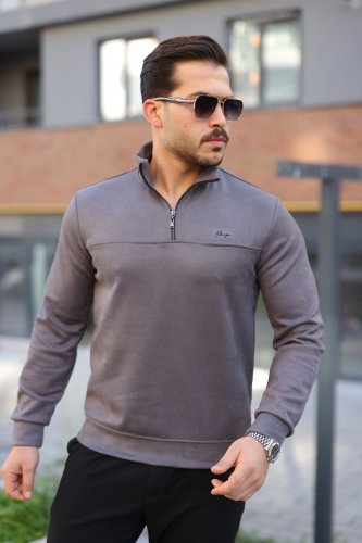 Erkek Süet Yarım Fermuar Dik Yaka Sweat
