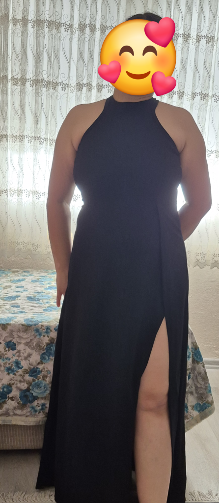 Kadın halter yaka derin yırtmaç detaylı tam boy ithal krep abiye elbise