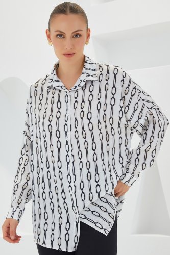 Siyah Beyaz Desenli Oversize Saten Gömlek 3985