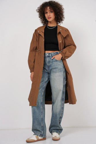 5939 Astarlı Uzun Trençkot - Taba