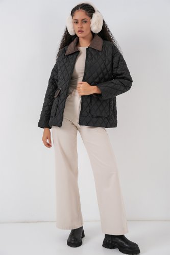 Siyah Kahve Kapitone Oversize Mont 5229