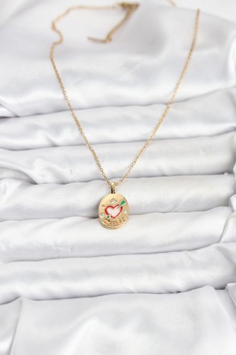 316L Çelik Zincir Gold Renk Kalp Figürlü Kadın Kolye