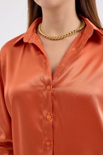 3964 Hafif Dökümlü Saten Gömlek - Turuncu