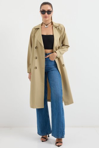5853 Kruvaze Yaka Trençkot - A.Haki