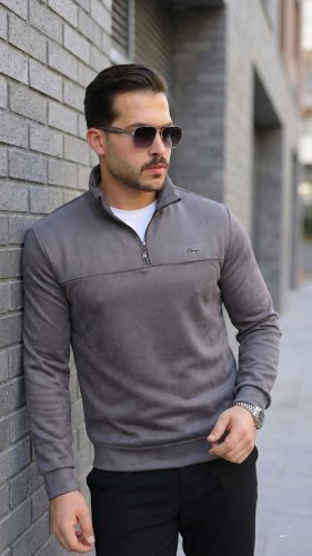 Erkek Süet Yarım Fermuar Dik Yaka Sweat
