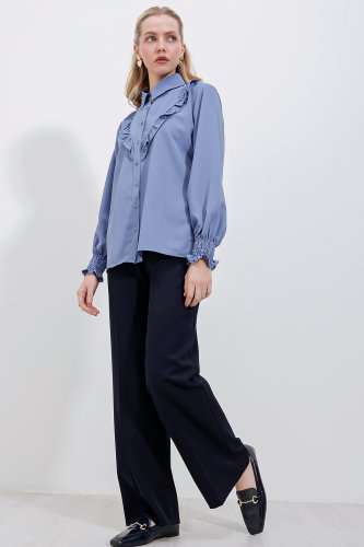 20223 Fırfırlı Uzun Kol Gömlek - İndigo