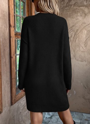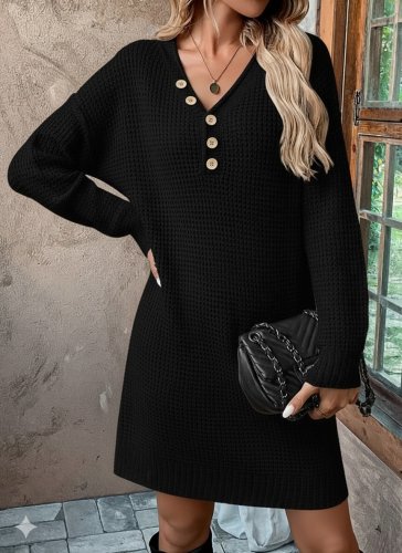 Kadın uzun kollu v yakalı düğmeli mini triko elbise