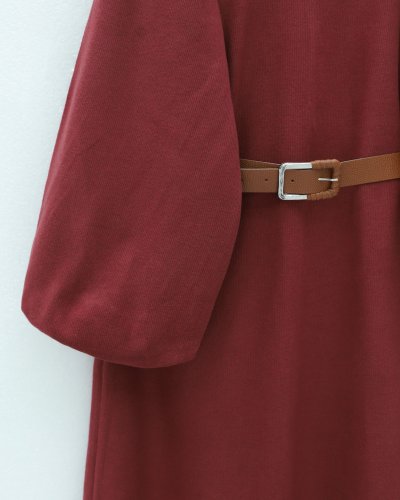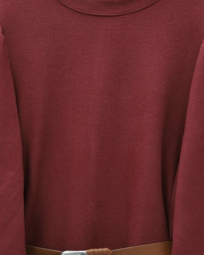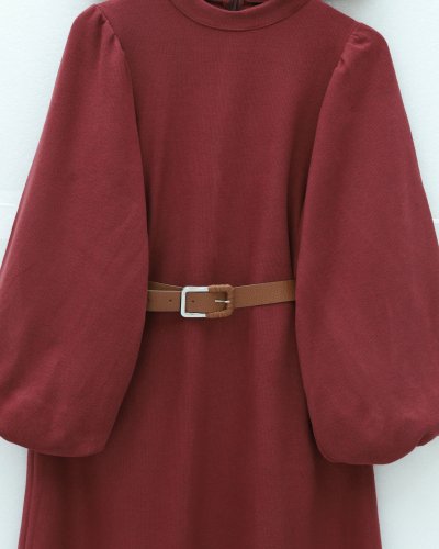 Kalın Kemerli Balon Kol Selanik Elbise -Bordo