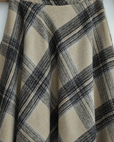 Ekose Desenli Yanı Fermuarlı Kaşe Çan Etek -Vizon