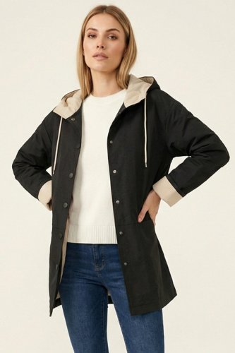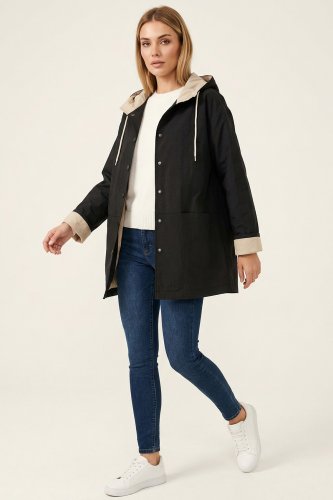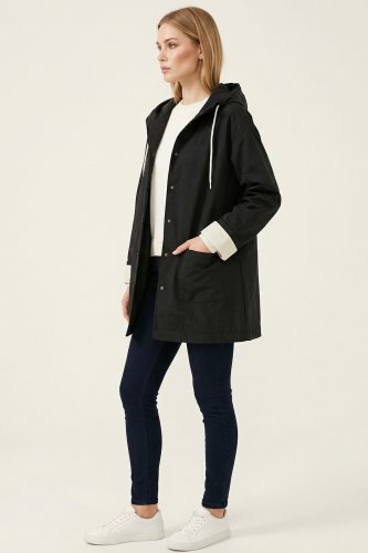 Teknik Kumaş Kapüşonlu Trençkot 5972 - Siyah