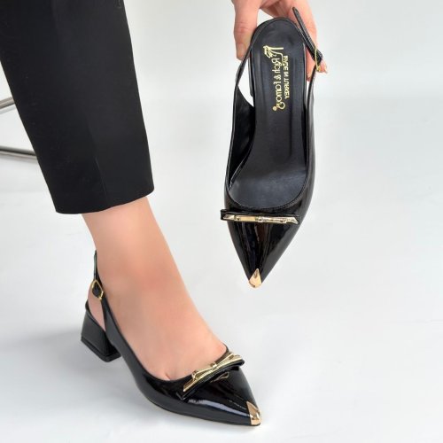Ricy Siyah Rugan Topuklu Ayakkabı