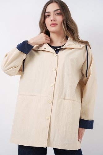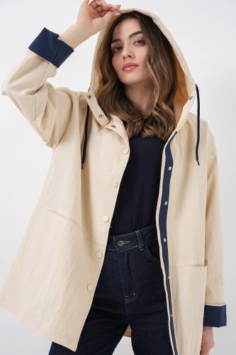 Teknik Kumaş Kapüşonlu Trençkot 5972 - Ekru