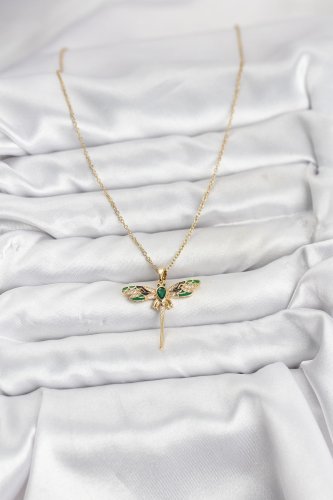 316L Çelik Zincir Gold Renk Yusufçuk Model Zirkon Taşlı Kadın Kolye