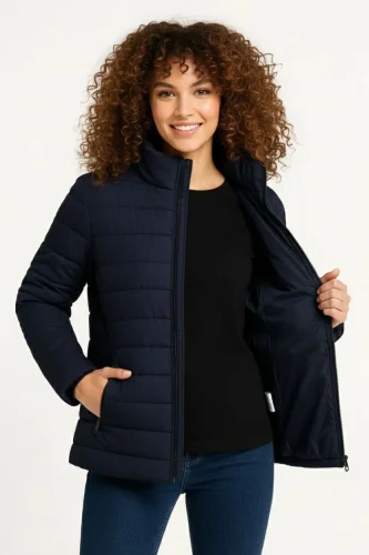 Mikro Su İtici Kapitone Baskılı Astarlı Fermuarlı Bomber Mont - Lacivert