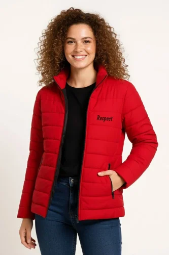 Mikro Su İtici Kapitone Baskılı Astarlı Fermuarlı Bomber Mont - Kırmızı
