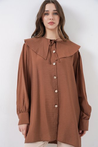 Bebe Yaka Uzun Tunik 5967 - Sütlü Kahve