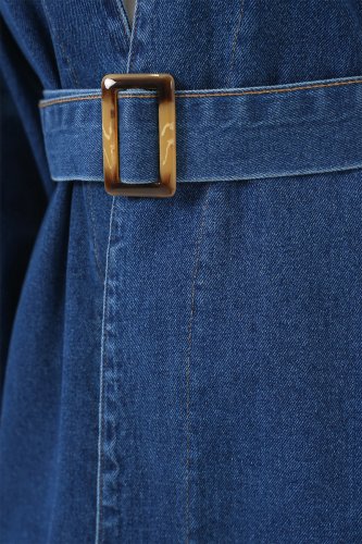 Kemerli Kot Ceket Tunik 5985 - Mavi